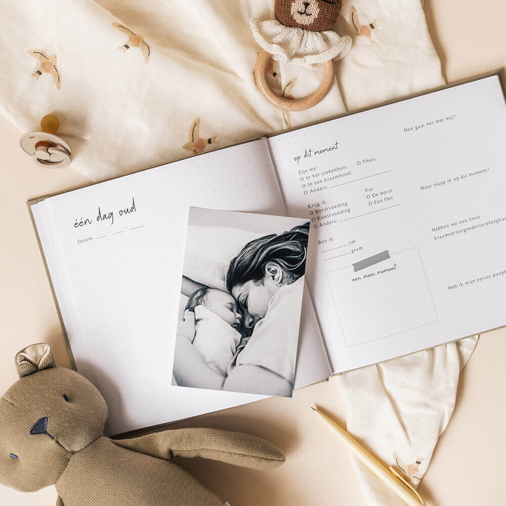 Gefeliciteerd met de kleine spruit! Het eerste jaar van je kleintje gaat supersnel voorbij. De tijd gaat zo snel voorbij. Voordat je het weet zijn ze groot. De bijzondere momenten onthoud je natuurlijk, maar de kleine details van de ontwikkeling, grappige momenten en details worden snel vergeten. Leg ze daarom vast voor later in een babyboek zodat je ze nooit meer vergeet en samen terug kunt lezen als je kindje wat groter is!